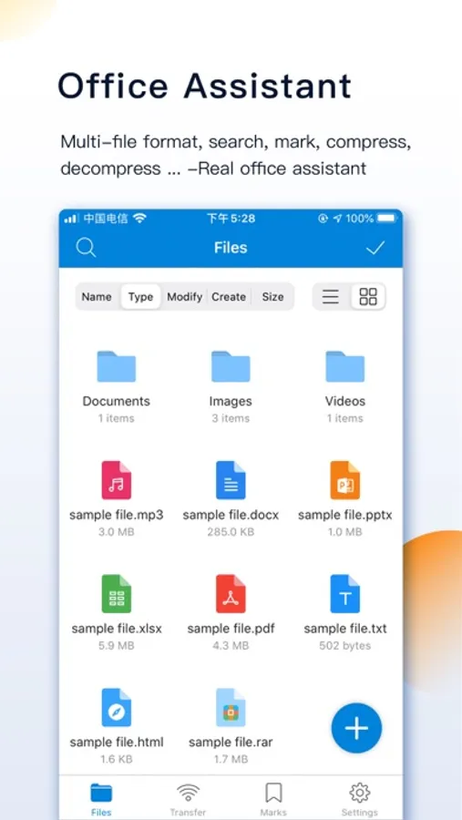 Sharing panel: through the sharing panel, batch share files into the APP or out-to other APP;