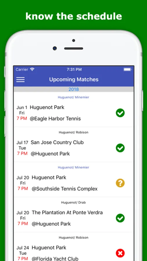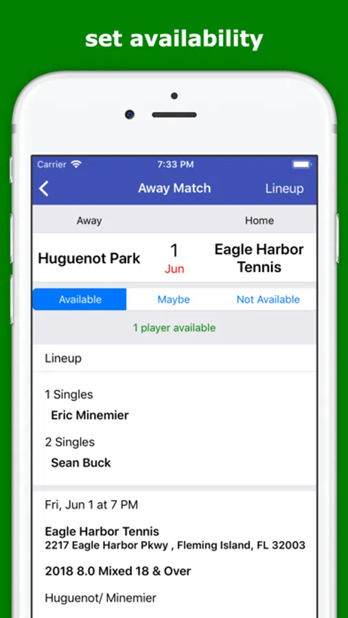 - Tennis Team Connect will notify you of upcoming matches and request your availability.