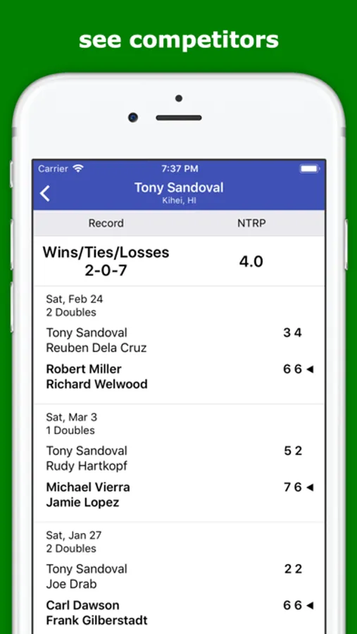 Coordinate all your team logistics with Tennis Team Connect. You'll save hours on administration so you can spend more time on the court! Tennis Team Connect creates seamless communication between players and captains. The app automatically contacts and reminds players, freeing up time for the captain.