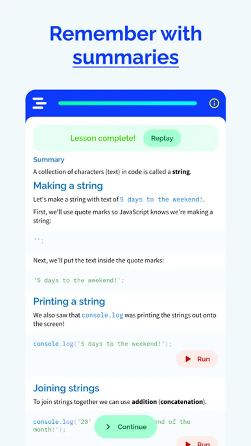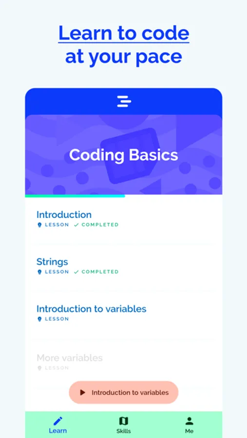 Learn for free with Encode's self-paced lessons: bite-sized explanations, coding challenges and real-world examples build up your coding skills.