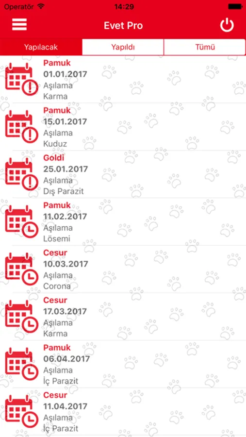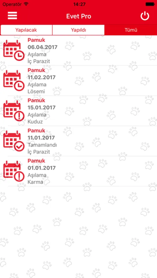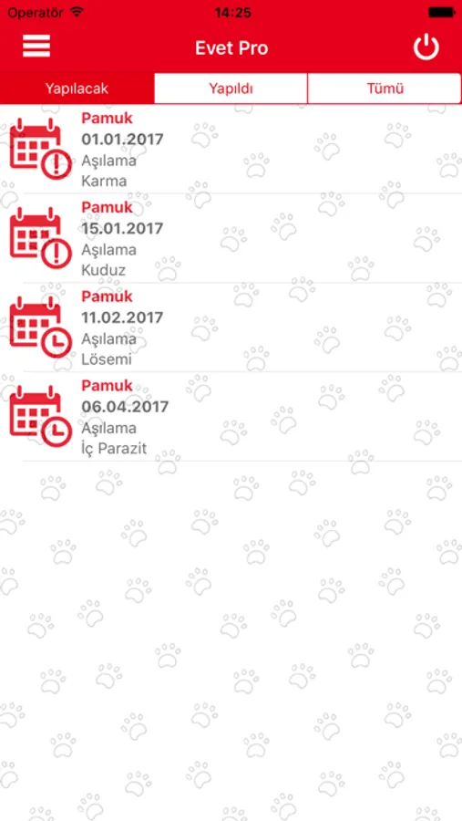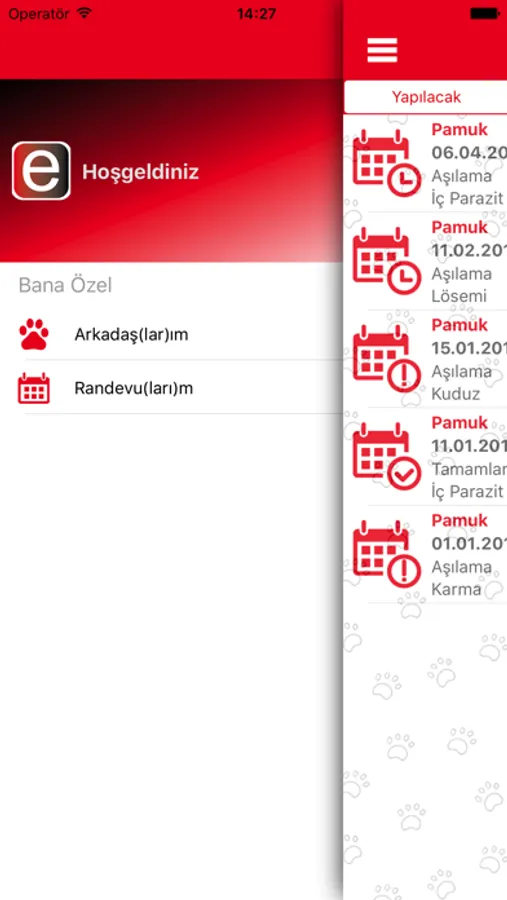 Aşı, operasyon ve diğer tüm randevularınızı E-vet Pro mobil uygulaması üzerinden takip edebilirsiniz.