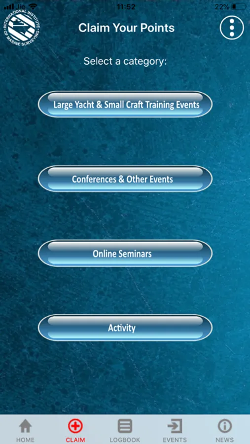 At the end of the event, or on your return home, you can open the app to make a claim for 5 points for the training event from the drop down menu. You submit your claim.