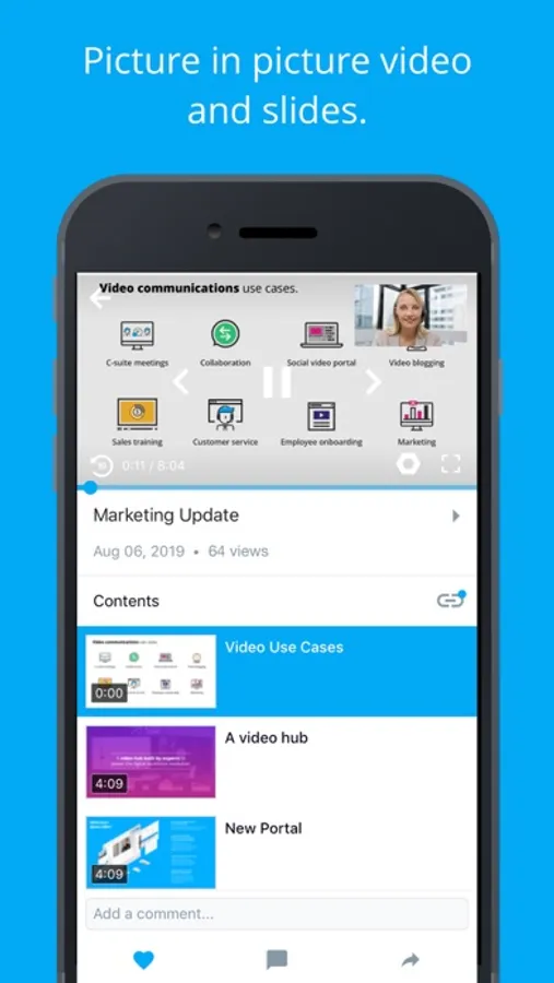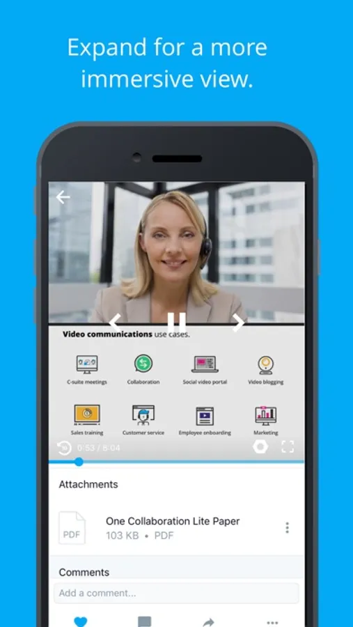 Qumu View provides Qumu Cloud users with a superior viewing experience on mobile. It puts content in the hands of who need it, and they get notified immediately when new content has been published. It makes Qumu videos a social communications tool for enterprise.