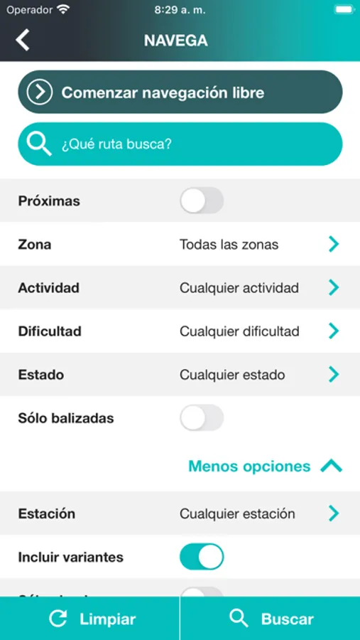 - Search engine for routes, allowing you to filter the search by name, nearby routes, zone, activity, difficulty, recommended season, status, distance, time, elevation gain, distance by path, routes marked, variants, circulars, etc.