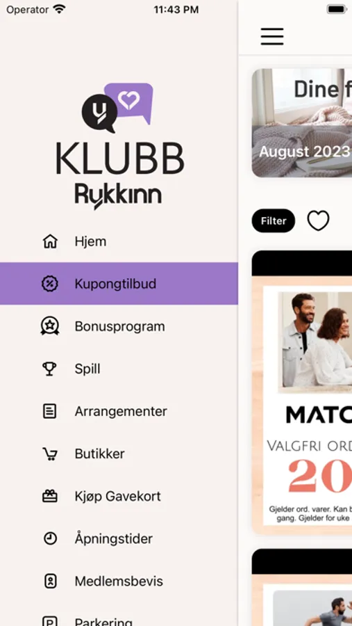 App for medlemmer av Rykkinn Senter sin kundeklubb. Applikasjonen gir deg:
