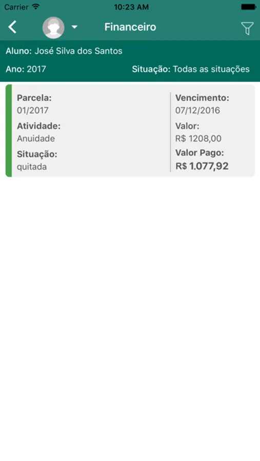 - Consulta ao extrato financeiro e emissão de boleto (apenas para os responsáveis financeiros).