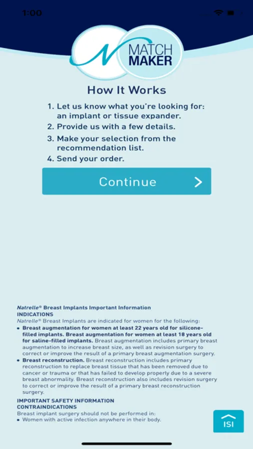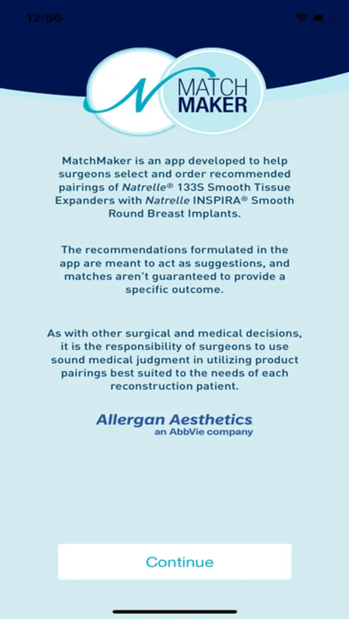 MatchMaker is an app developed to help surgeons select and order recommended pairings of Natrelle® tissue expanders and breast implants.