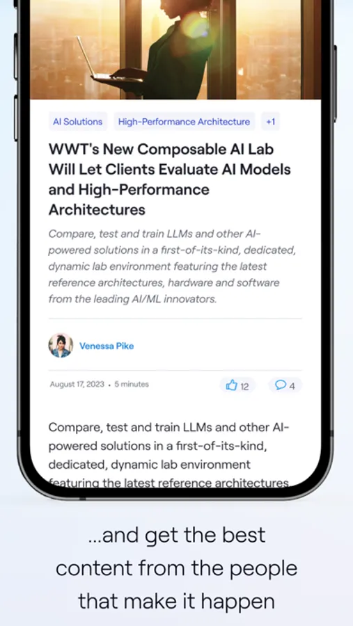 Articles and case studies are embedded throughout the WWT app and can be tailored based on your interests.