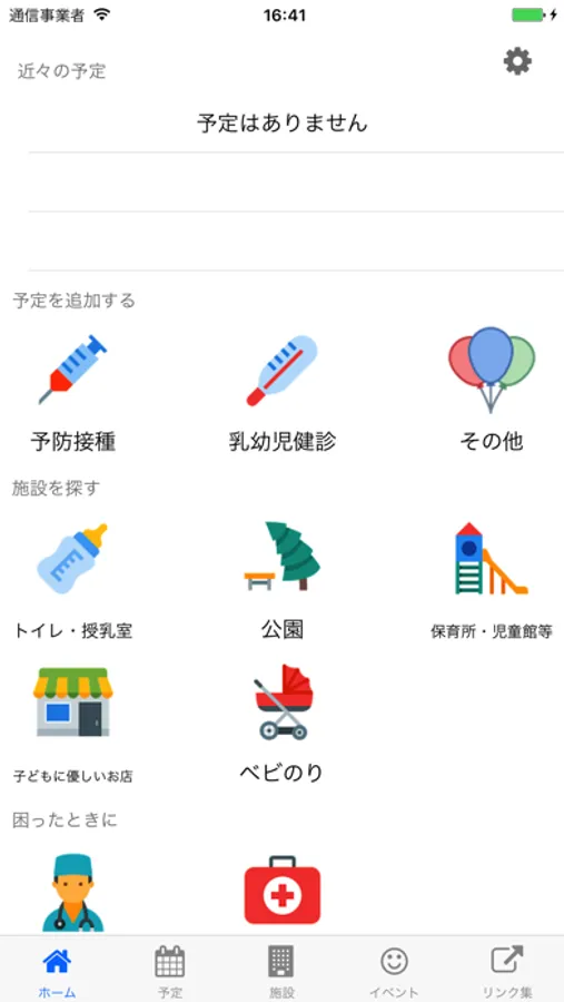 予防接種・乳幼児健診のスケジュール入力ができます。各市町の休日当番医やこどもの救急に関する情報を見ることができます。