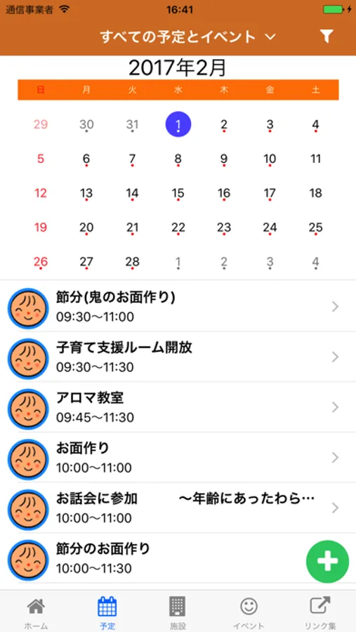 登録したスケジュールや、各施設でのイベント情報、各市町で配信している子育て関連のイベント情報についてカレンダー機能を利用して確認することができます。