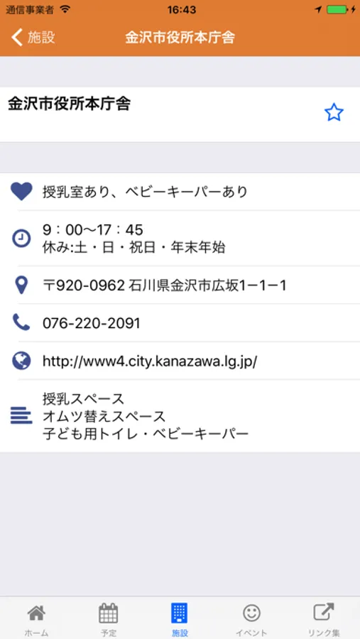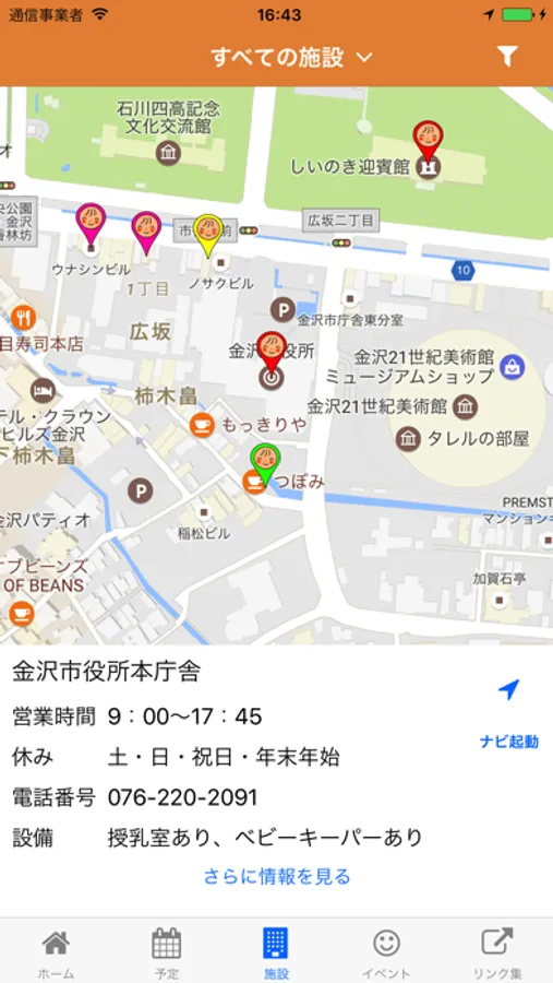 石川中央都市圏を構成する4市2町(金沢市、白山市、野々市市、かほく市、津幡町、内灘町)の子育て情報を検索できるアプリケーションです。