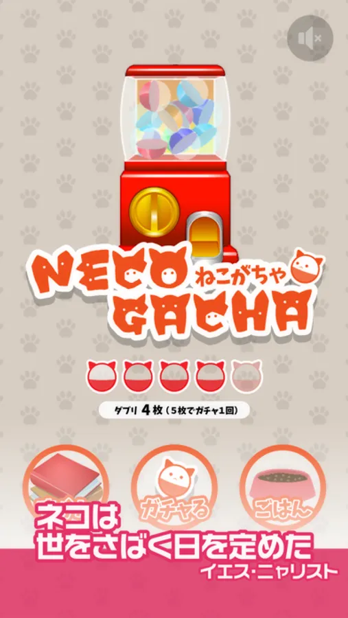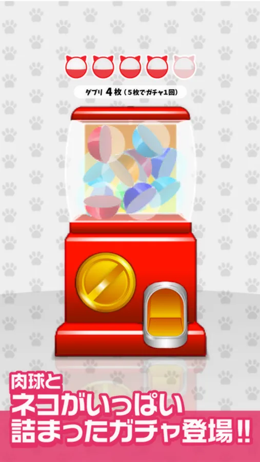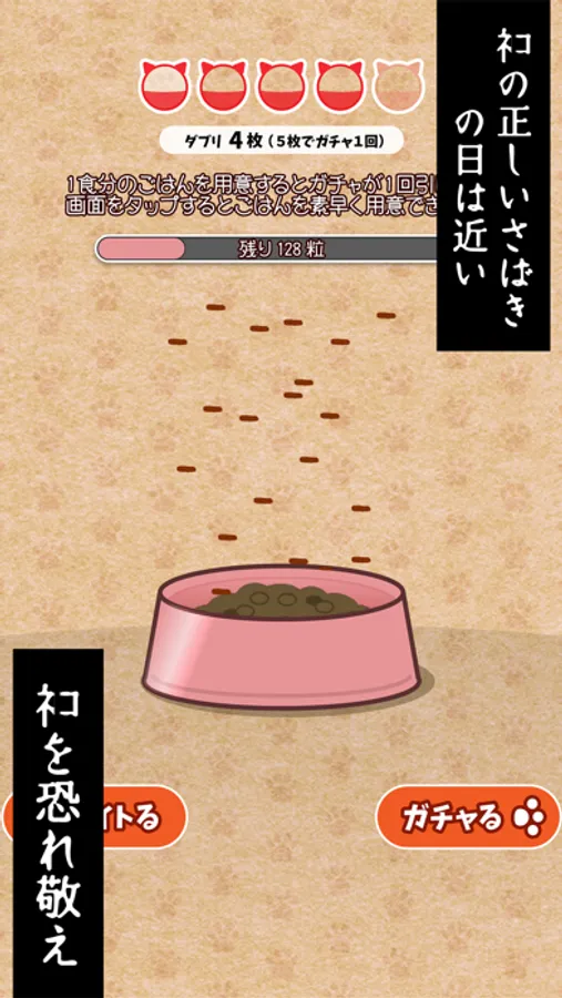 ガチャガチャの残り回数が0になったら、ねこのごはんを用意すると、ガチャがひけるようになるよ!