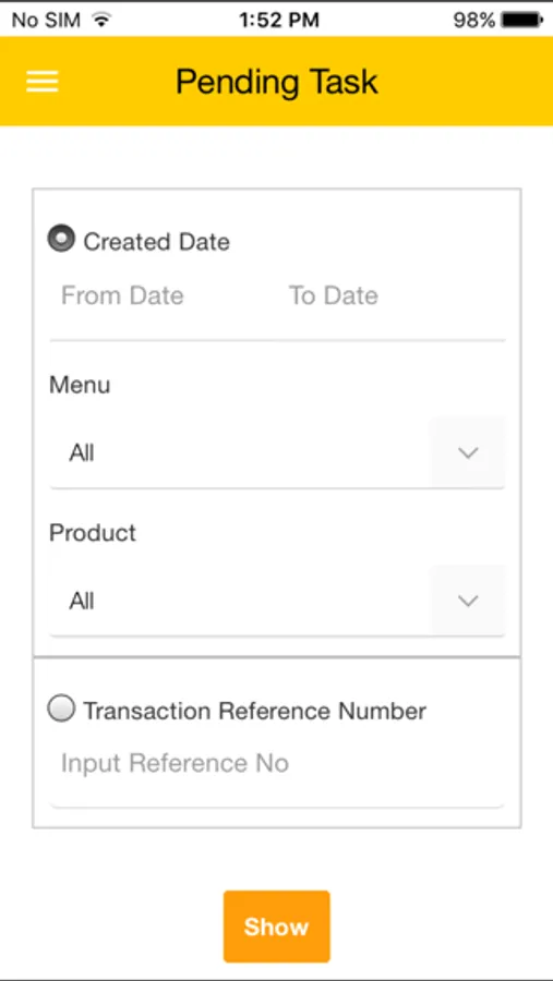 2. Mobile Application - Pending Task
