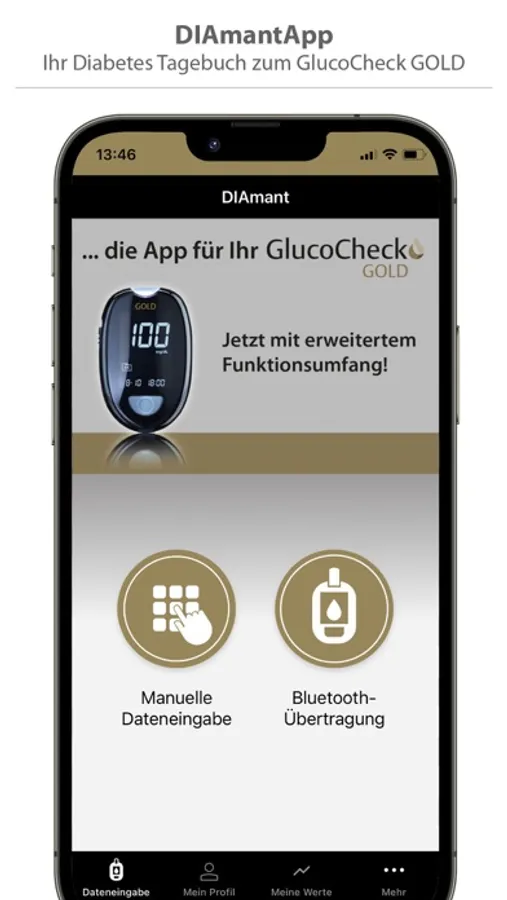 Die DIAmantApp ist ein digitales Diabetes-Tagebuch zum funktionalen Therapiemanagement. Sie wurde mit dem Ziel entwickelt, den Nutzern des GlucoCheck GOLD Blutzuckermesssystems den täglichen Umgang mit ihrem Diabetes und die Dokumentation ihrer Blutzuckerwerte zu erleichtern.