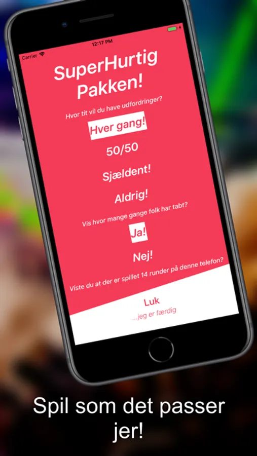Derudover kan du helt selv bestemme hvor ofte du vil have dem! Pakken giver også mulighed for et ekstra spil - Dette betyder at appen kan holde styr på hvem der har tabt flest gange, dermed kan der gives ekstra straf efter ønske!