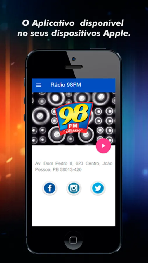 O Aplicativo Rádio Correio 98 FM JP retransmitem a programação com qualidade de som digital recebido via internet, agora é possível ouvir uma da melhores rádios da Paraíba em qualquer lugar do mundo.