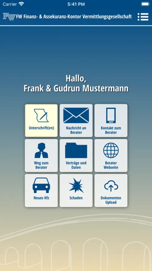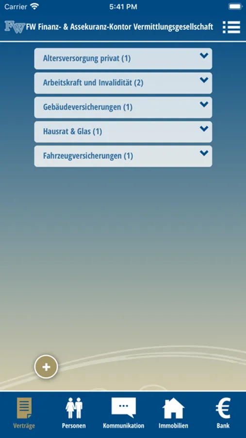 Die FW Makler APP ist eine Anwendung zum Zugriff auf bei Finanz- & Versicherungsmakler gespeicherten Kundendaten und -dokumente. Somit kann man jederzeit und unterwegs auf die eigenen Vertragsdaten zu Versicherungen, Kapitalanlagen, Finanzierungen und Bausparverträgen zugreifen und sich die dazu verfügbaren Dokumente ansehen.