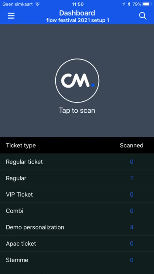 With the CM Tickets ScanApp, you can easily validate E-tickets for your event. Quick and easy. Just scan the code on the ticket with this free app. The ScanApp will tell you if the ticket is valid and gives you real-time insights in the number of visitors at your event.