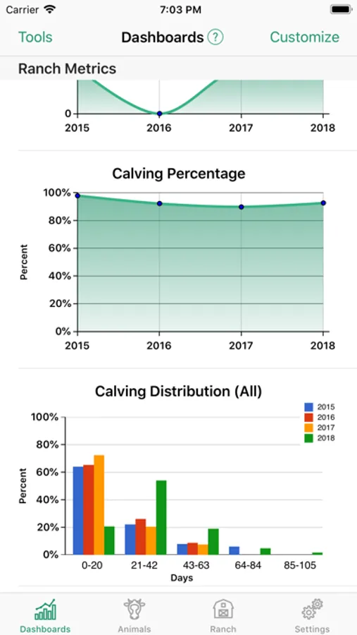 - Quick overview of your herd based on many values and metrics displayed in graph form