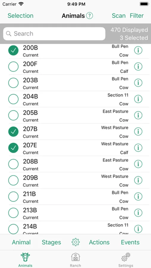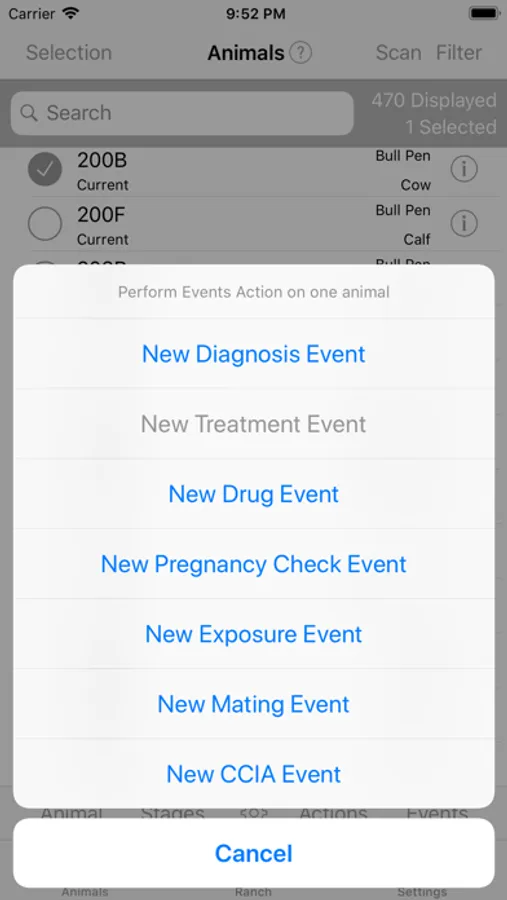 - Actions for calving, weaning, diagnosing disease, treatments, preg checking, matings, exposures, movements... and much more!