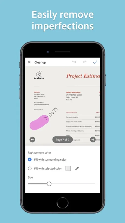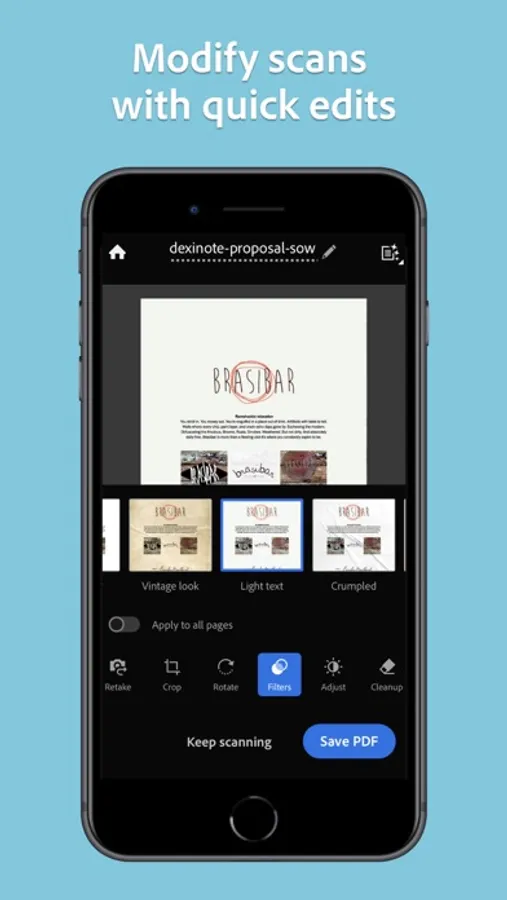 • Adjust the brightness and contrast of your scans in just a few taps.
