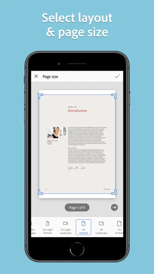 • Whether it’s a PDF or photo scan, you can preview, reorder, crop, rotate, resize, and adjust color.