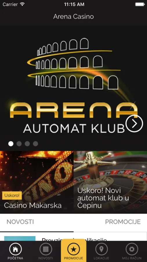 Službena mobilna aplikacija za Arena Casino i automat klubove napravljena je kako bi korisnicima omogućila svestranu, modernu i nadasve kvalitetnu uslugu. U nekoliko klikova korisnik može saznati sve o promocijama i ostalim pogodnostima u različitim Arena poslovnicama na području Republike Hrvatske.