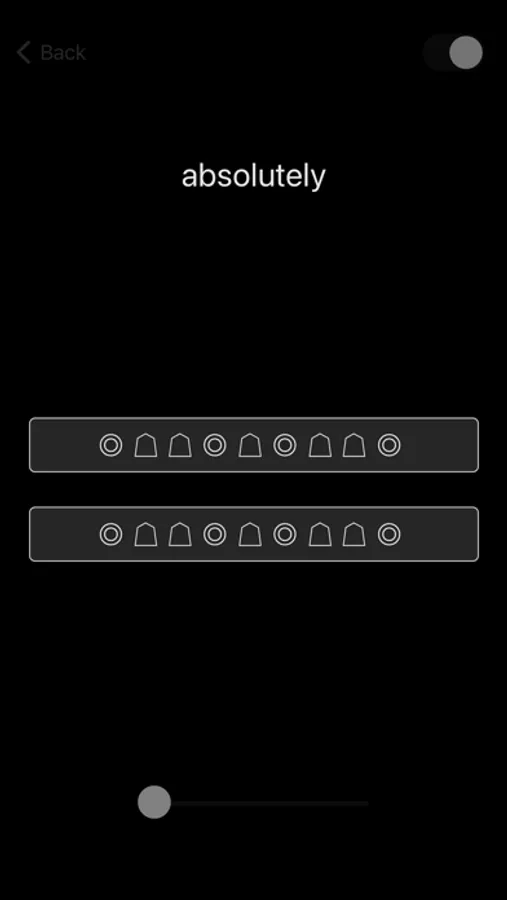 Select a word. Symbols corresponding to the number of sounds in the word will appear in the the two buttons. Press either button to hear a sequence of sounds which make up the word. Lower button will play every vowel equally stressed. Upper button will only stress the dominant vowel.