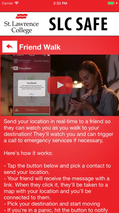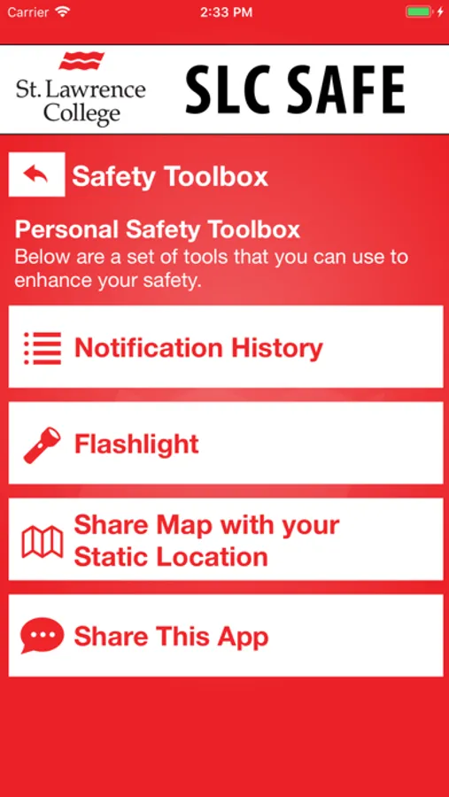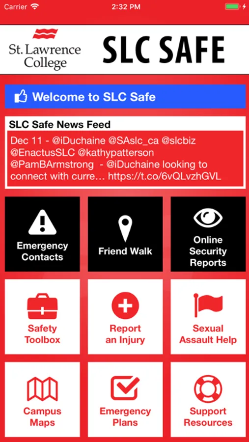 SLC Safe is an essential tool to enhance your safety at St. Lawrence College. The app will send you important safety alerts and provide instant access to campus safety resources. SLC Safe is the official mobile safety app of St. Lawrence College.