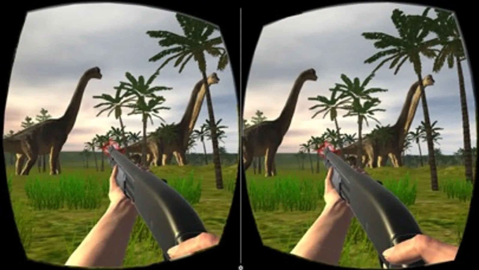 Hunting dinosaurs free game whose goal is to protect primates who walk from one place to another of dangerous dinosaurs in Jurassic and Triassic era with Virtual Reality (VR) and Google Cardboard.
