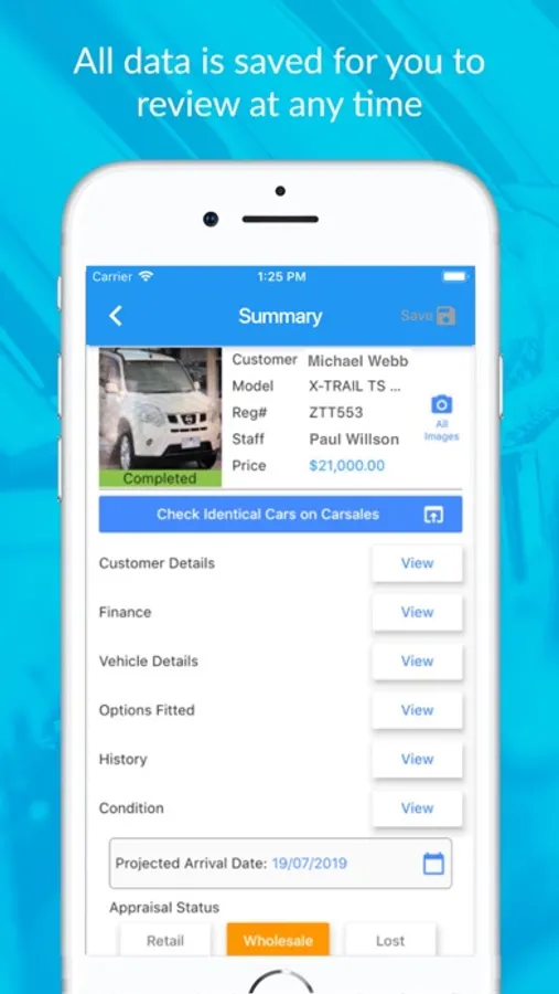 Streamline communication between your dealership and external wholesalers with all relevant and important vehicle data being captured, recorded and communicated all via mobile device or tablet. Once they review the vehicle data, they simply submit their valuation via a quick link in the email.