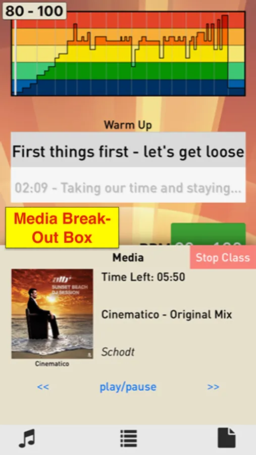 iClass Builder Player is also loaded with tons of extras like an on-demand interval timer, instant album and artist info at the tap of a finger, and all of your pre-determined cues in an immediate access scrolling screen for easy in-class review when you need it.