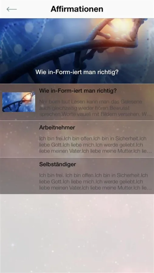 Das Bioenergetik-Zentrum in der Diepoldstr. 18, D-86688 Marxheim bietet Ihnen kostenlos empfehlenswerte Affirmationen.