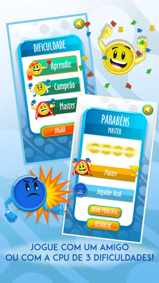 Jogue no mesmo dispositivo com seus amigos ou contra o CPU.