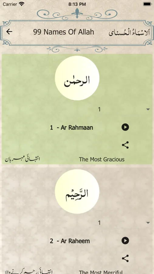 Asma Ul Husna Is Added, Where you can read or play 99 Names of Allah.