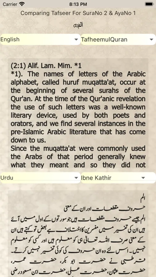 Quranhub has unique features like Compare Tool which allows user to compare two different translations regardless of language, you can compare translations from different language and translators. This also allows user to compare tafseer of different languages.