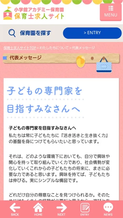 小学館アカデミー保育園の中途転職&新卒採用アプリです。