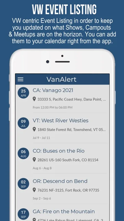 A nationwide VW Event Calendar is available that'll list every VW Event within your area so there is no stressing out over missing one. These are also crowd sourced by attendees and event organizers.