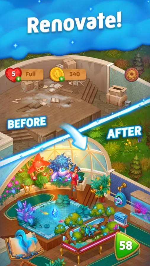 Beat colorful match-3 levels to restore the school of magic to its former glory. Wonders and adventures start right from the doorstep!