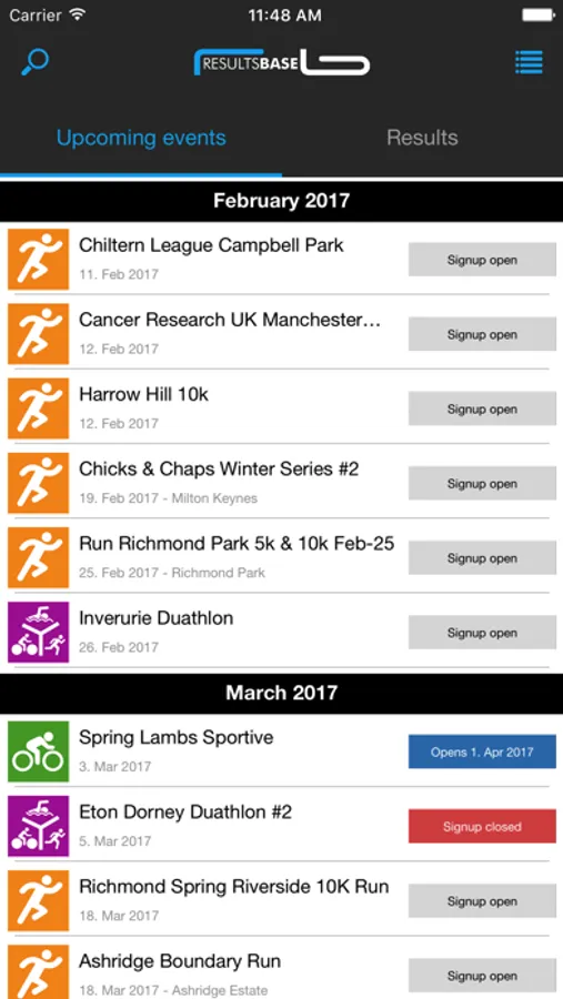 Get LIVE results and overview of upcoming and recent events at ResultsBase.