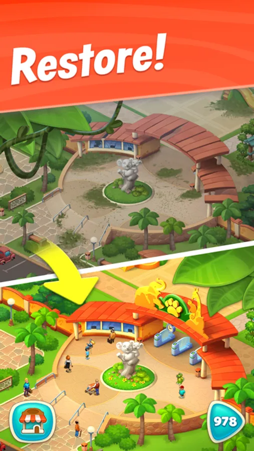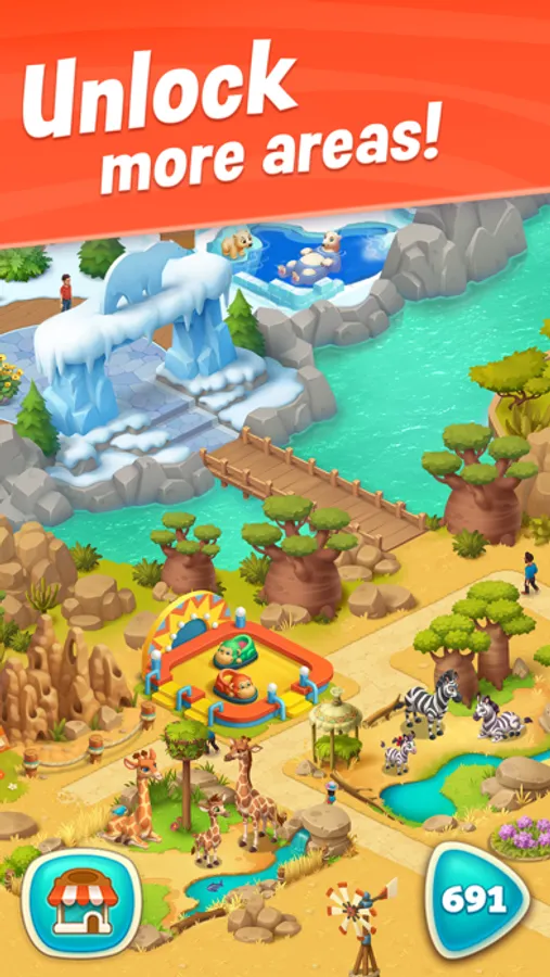● Enjoy your favorite gameplay: beat match-3 levels to restore the zoo!