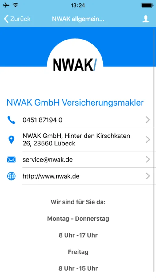 Die NWAK GMBH ist ein Gemeinschaftsunternehmen des Versicherungskontors MARTENS & PRAHL Lübeck und leistungsstarken Versicherern. Diese App ermöglicht Ihnen den direkten Zugang zu Ihrem Ventilmakler. Sie sind mobil - und wir sind es ab sofort für Sie auch! Einfach kostenlos runterladen und los geht’s!