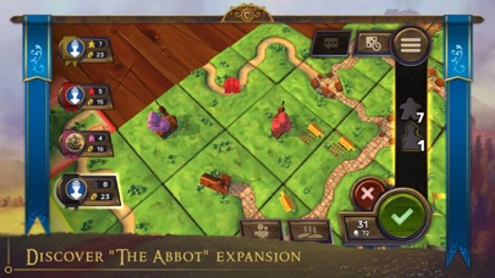 Discover or re-discover Carcassonne, the multi-awarded tile-based game in which players draw and place their tiles to build a medieval city. Place your cities, roads, abbeys or fields to enlarge your landscape, then place your followers, the meeples. Knights, robbers or farmers... Each meeple will help you control your territory and win points.
