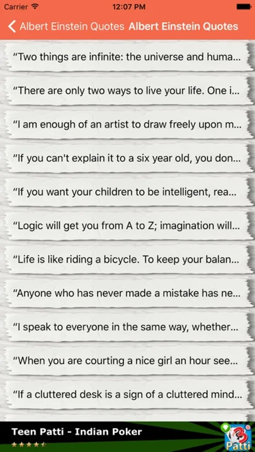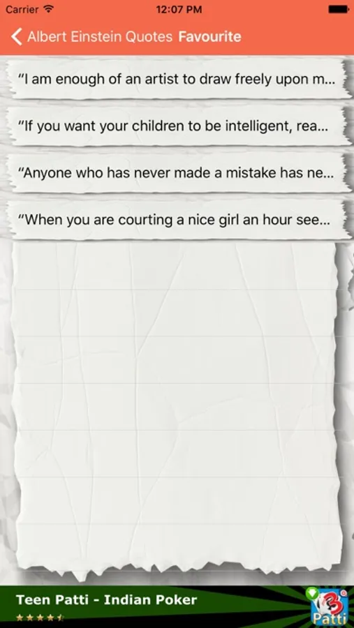Features include selecting the sayings of Albert Einstein and bookmarking