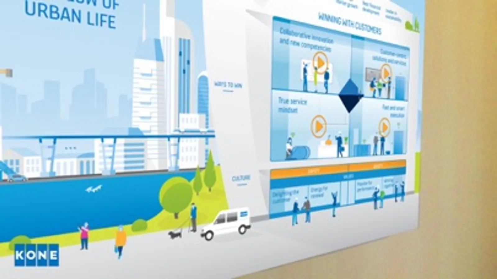 KONE Augmented Reality (AR) App brings different pictures to life. Move the camera in your mobile device on top of the pictures and see how the different elements start to move.