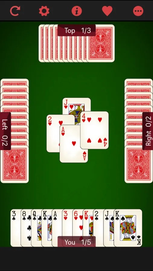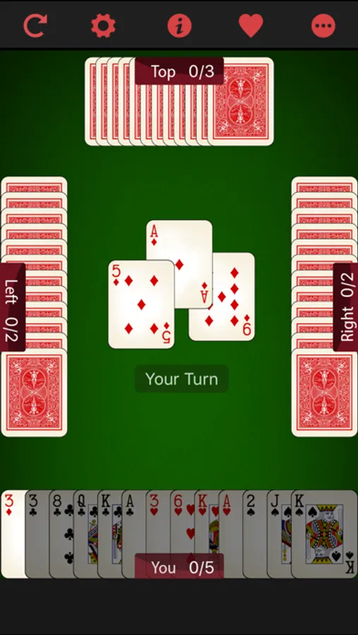 Deal and play are counter-clockwise.To succeed, a player must win the number of tricks called, or more trick than the call. If a player succeeds, the number called is added to his or her cumulative score. Otherwise the number called is subtracted.