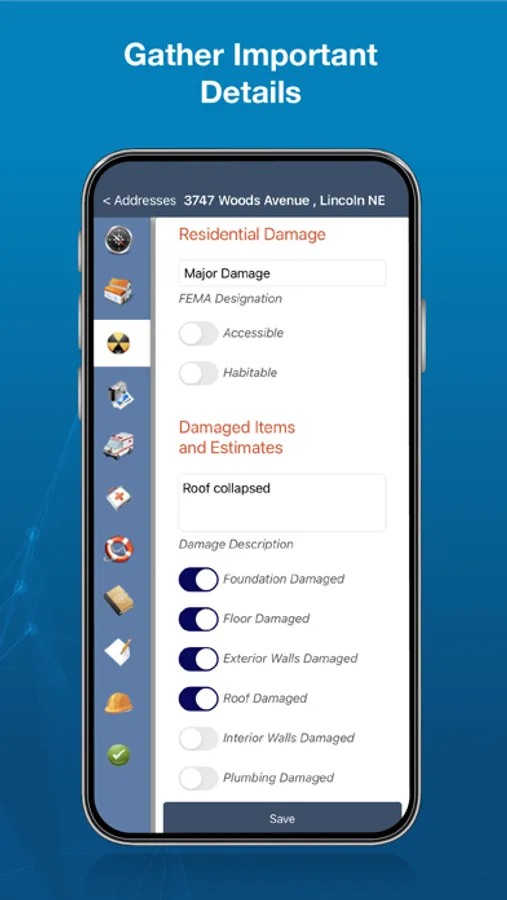 - FEMA Damage Designations (Affected, Minor, Major, and Destroyed).