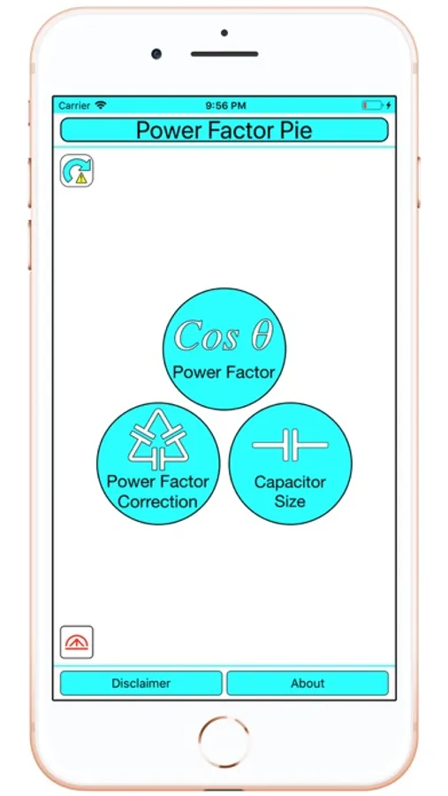 Power Factor Pie is written in manner to allow you to undertake power factor related calculations with ease. The following three features are available within the App: