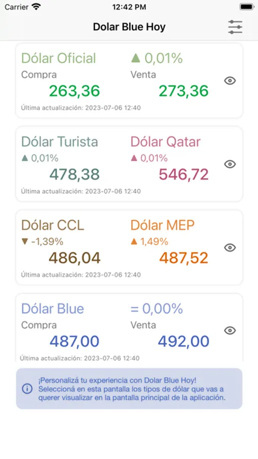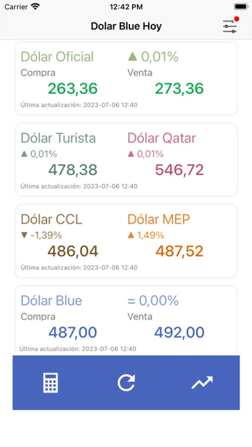 Llevá la cotización actualizada del Dólar Oficial, Dólar Turista, Dólar Qatar, Dólar CCL, Dólar MEP y Dólar Blue (paralelo) en Argentina.