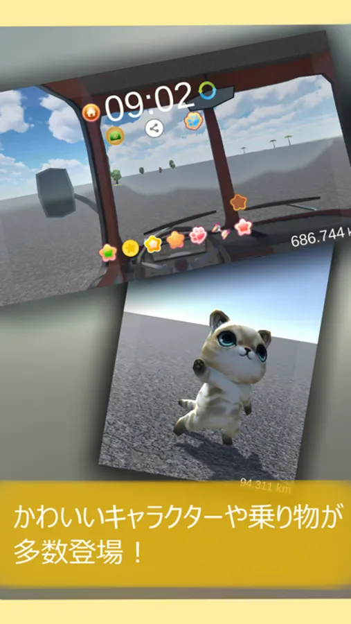 Runにゃーは片手で遊べるゆるいアプリです。難しい要素はありません。なんなら、ひたすら眺めるだけでもOK!勝手に進みます。豪快!!